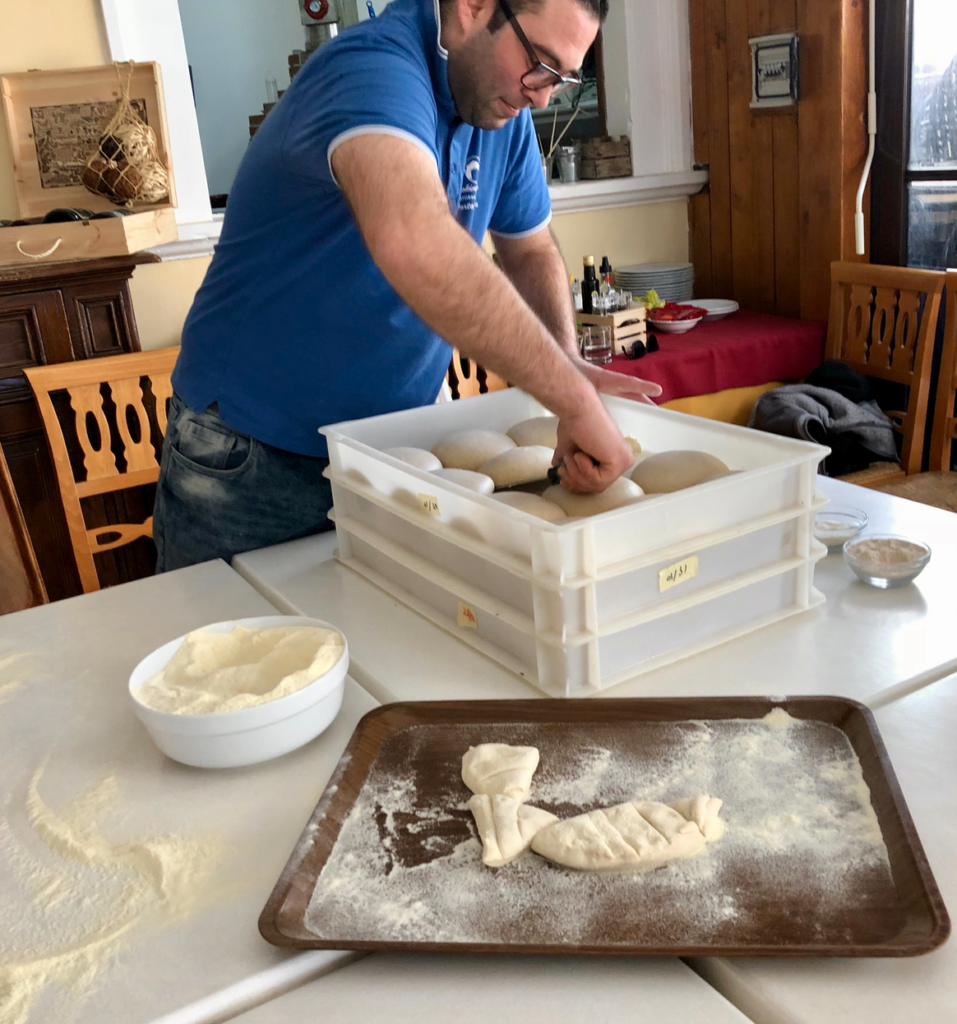 Pizza, Pizza….Time to make the pizza!!! This class also started with the flour and then we made the dough. We had to knead the dough to the perfect consistency, building up the gluten. Once we shaped the dough into round circles, they took ours away and brought out the ones that had already been proofing for over 24 hours.