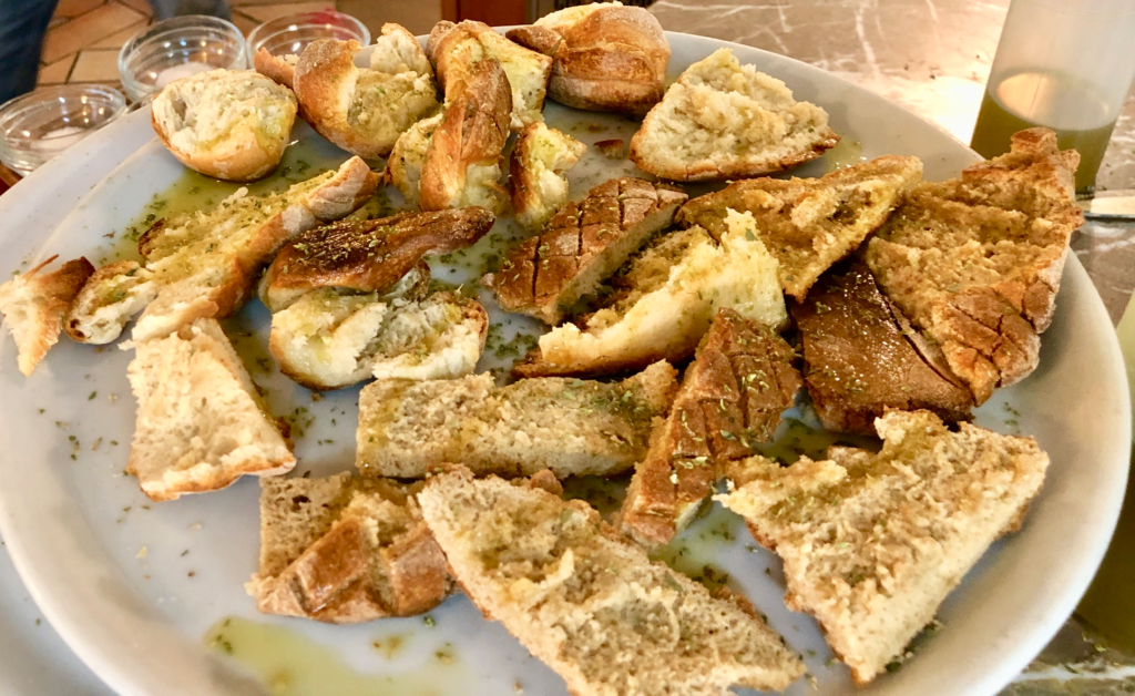 Upon arriving at the restaurant, we were greeted by the chef and was setup with our apron. Let the party begin. One thing that I really liked about this class was the amount of food we received……I told you I like to eat. We started out with the first course which was appetizers. We made bread from scratch. They took us from the flour to the dough to the brick oven. Once the bread came out, it was cut into pieces and drizzled with an olive oil garlic mixture. We also had meats, cheeses, and olives along with a glass of wine with our new found friends. This was a great way to start off the class!!!