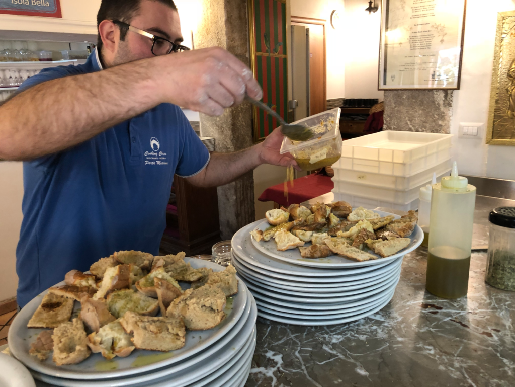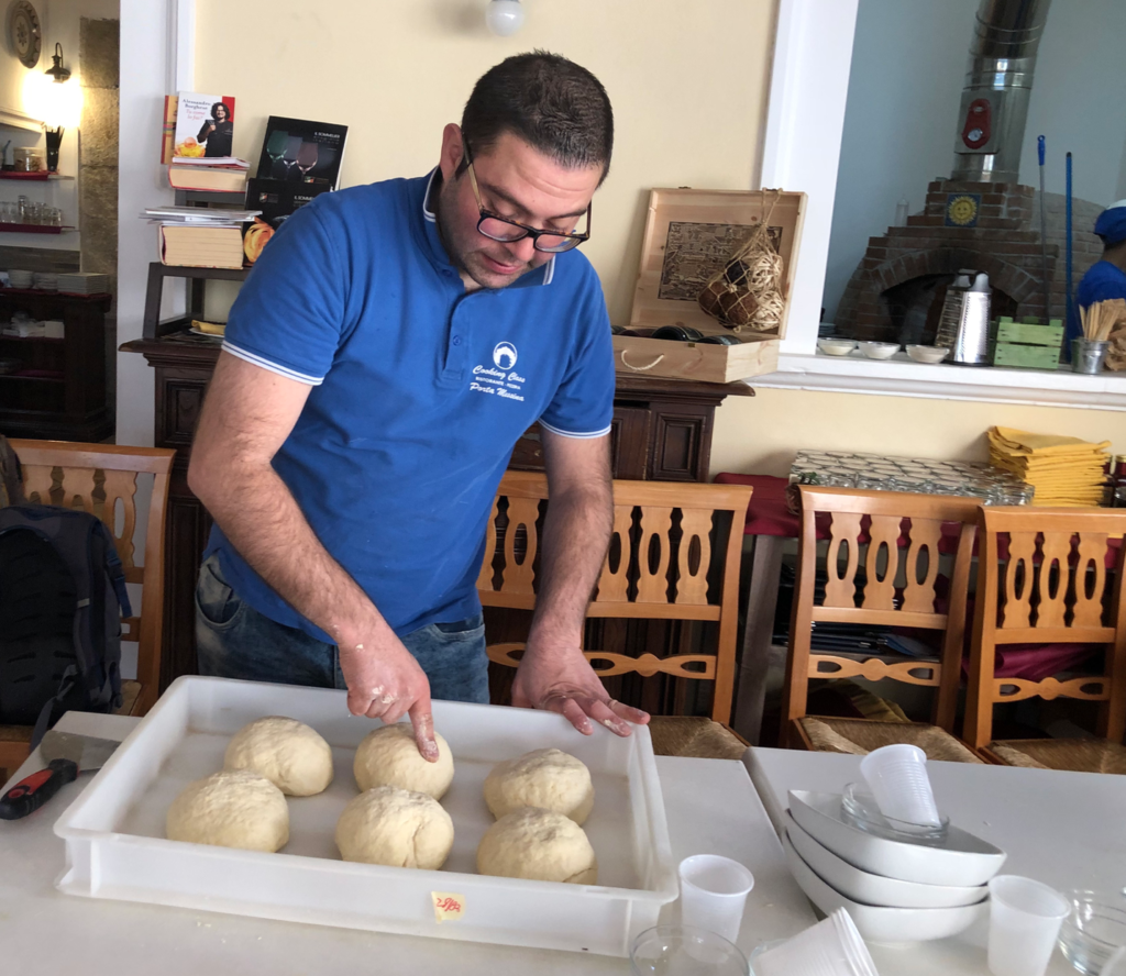 Pizza just happens to be one of my most favorite foods to eat. I LOVE a good pizza. I’ve now learned to enjoy all types of pizza for what they offer rather than being stuck on just one type that I like. I was determined, that before we left Europe, I wanted to attend a true authentic pizza cooking class. Since I plan our vacations, I figured why not see if we could take a class while we were visiting Sicily. I found the perfect one in Taormina at Porta Messina restaurant, one of the oldest restaurants in Taormina.