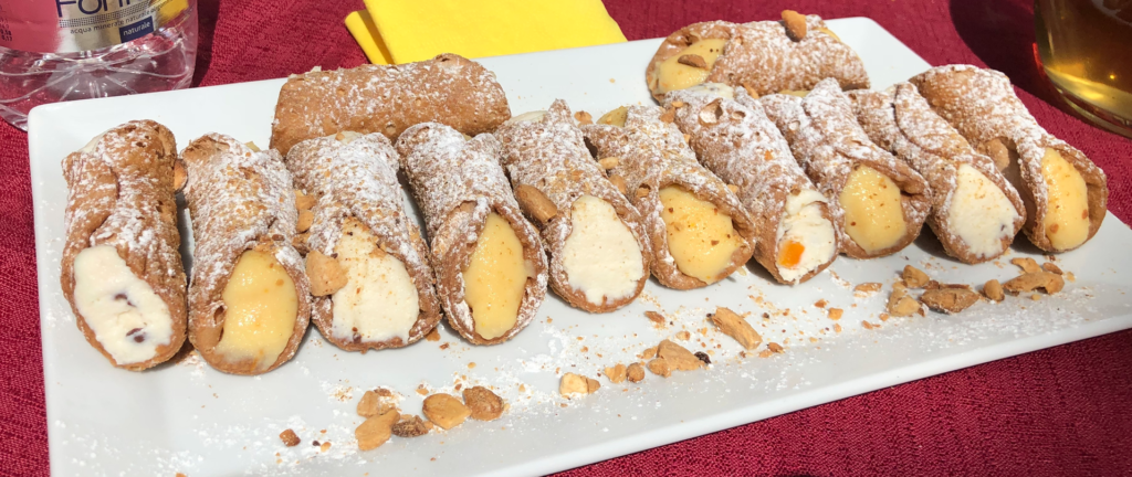 We took all of our food to the outdoor eating area. They had the table setup with our pasta, pizza, and to our surprise we also had cannoli’s!!! WINNING!!! I had chosen the pizza class over the cannoli class so I was soooo excited that we had it on our menu. We left this class with our tummies full. This class included the apron, the recipes, and a certificate of completion. It was an amazing experience and definitely worth adding to your itinerary.